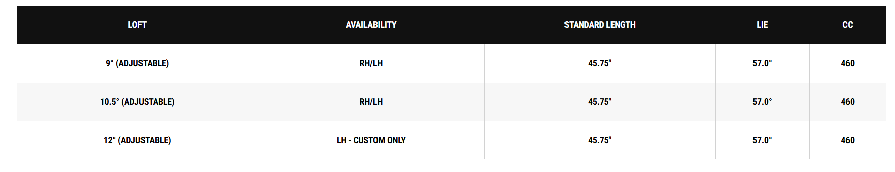 Clean, Streamlined Shape: A 460cc head designed for maximum, consistent performance with a "confidence-inspiring" look at address.