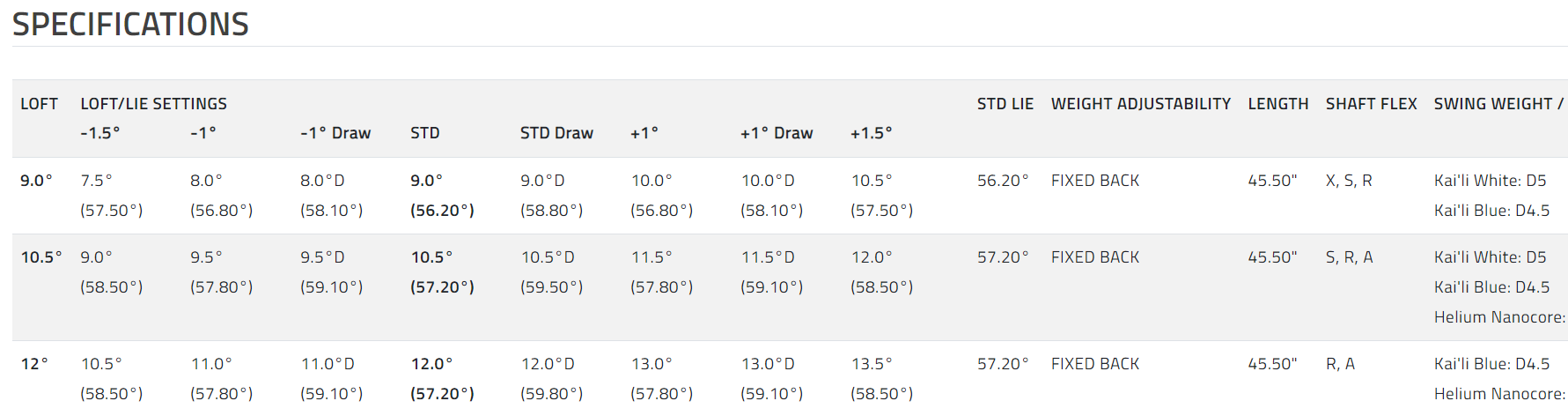 An adjustable loft sleeve offers fine tuning of trajectory and spin. Each loft is adjustable up to +/- 1.5 from the printed loft on the head.