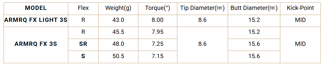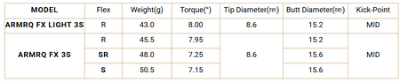 Shaft Weight: R (45.5g) SR (48g)