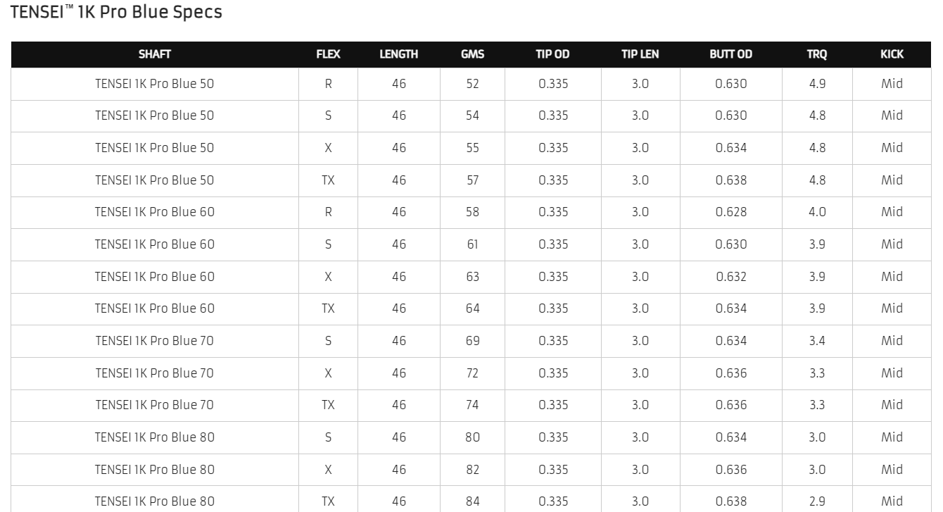 TENSEI 1K Pro Blue is the mid-launch, mid-spin member of the 1K Pro family. TENSEI 1K Pro Blue is built with a super-stiff handle section designed to amplify activity in the tip section to maximize ball speed.