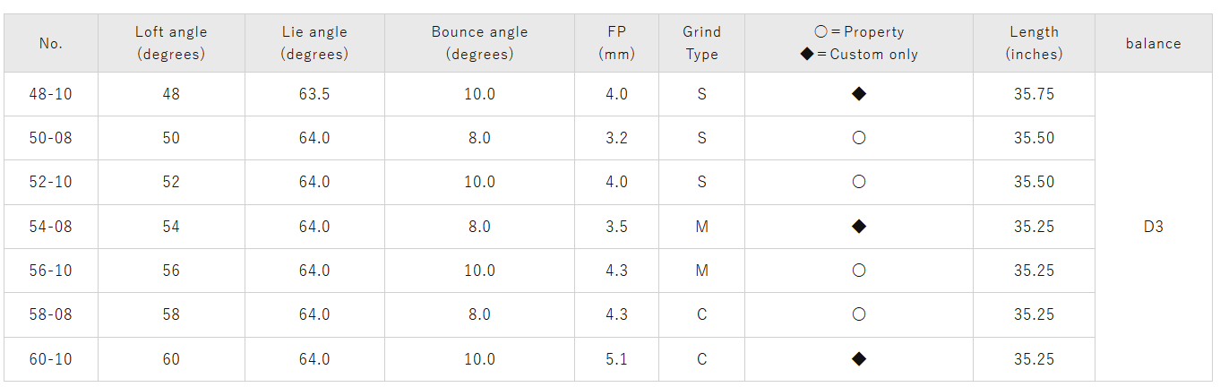 This model is recommended for those who swing with a level blow (not much turf). The leading edge is cut to reduce the resistance of the grass just before contact with the ball, a design unique to wedges. The head size is slightly larger than the T-1, making this model easier to set up