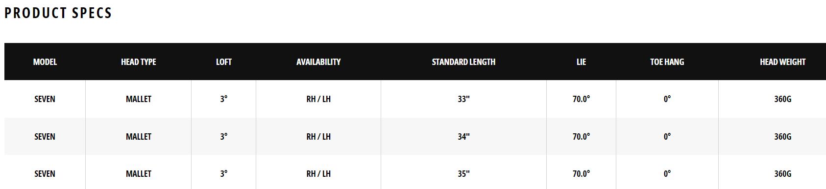 These premium putters feature a 100% milled stainless steel body fit with a 100% milled titanium insert. The multi-material construction includes unique contours on the back of the face that minimize ball speed losses on off-center hits, and greatly increase the sweet spot.