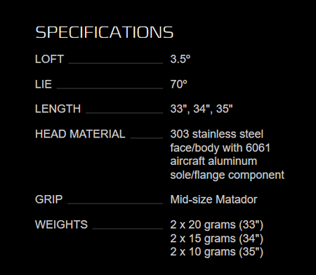 With a subtle shaft lean of 1° forward, superior alignment cues and a comfortable, familiar setup, this low torque design includes chain-link face milling for responsive, soft feel and a premium black shaft accessorized with a custom mid-size Matador grip. It’s a low torque solution with superior feel that promotes a stroke that keeps the face square to the stroke path.
