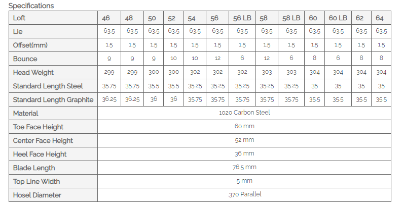 The JB Wedge is forged from 1020 carbon steel, with a milled face to provide the best in feel and face reactivity. It is available in both mid bounce and low bounce versions, and in raw, black and tour satin finishes